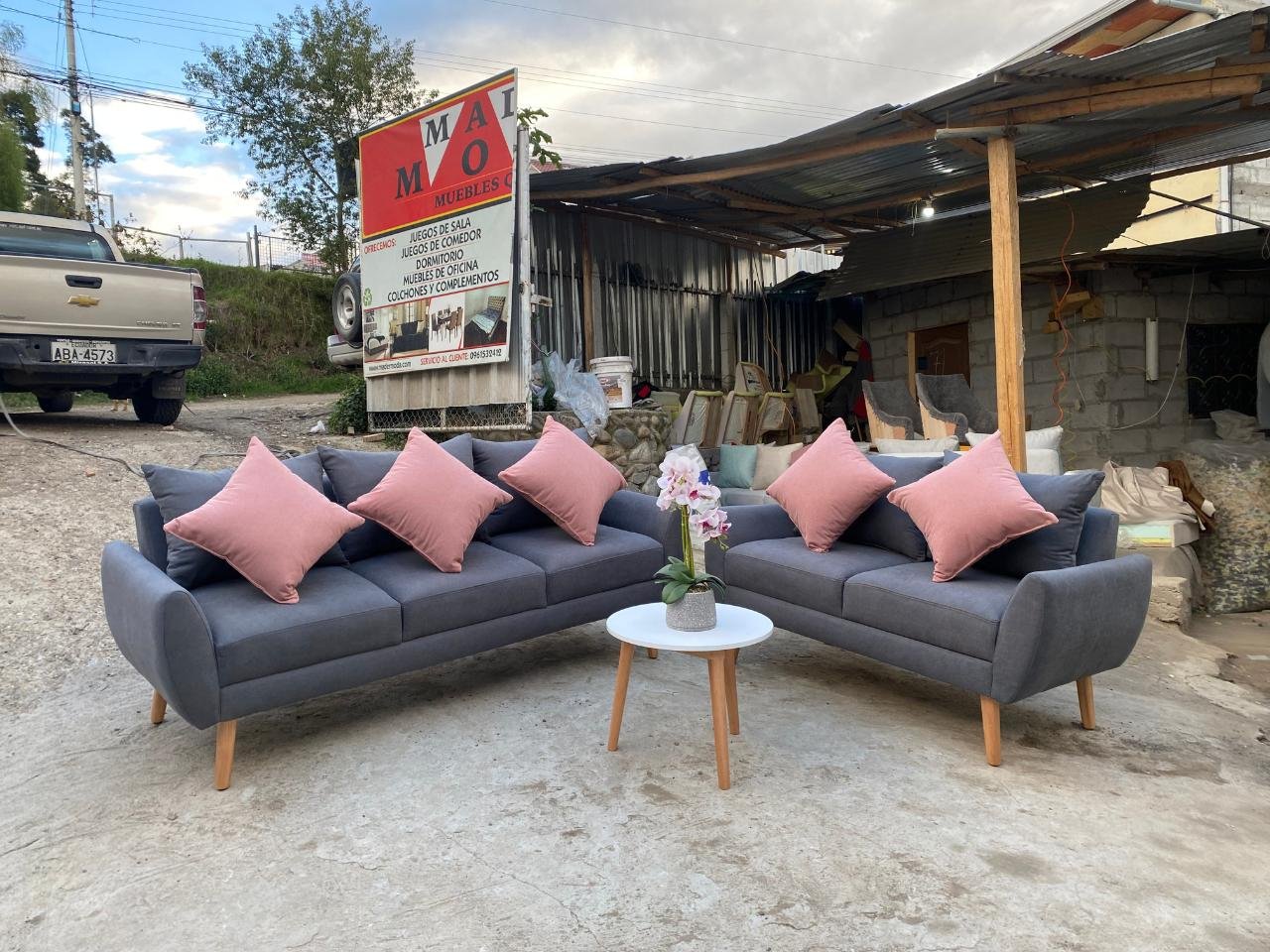 Fabricado con estructura de madera Copal de alta resistencia y esponja Chaide densidad 25. Incluye sillones y mesa de centro redonda o ovalada de 50cm según disponibilidad. Tapiz personalizable. Garantía de 1 año. Entrega en 2 a 5 días laborables en Cuenca.