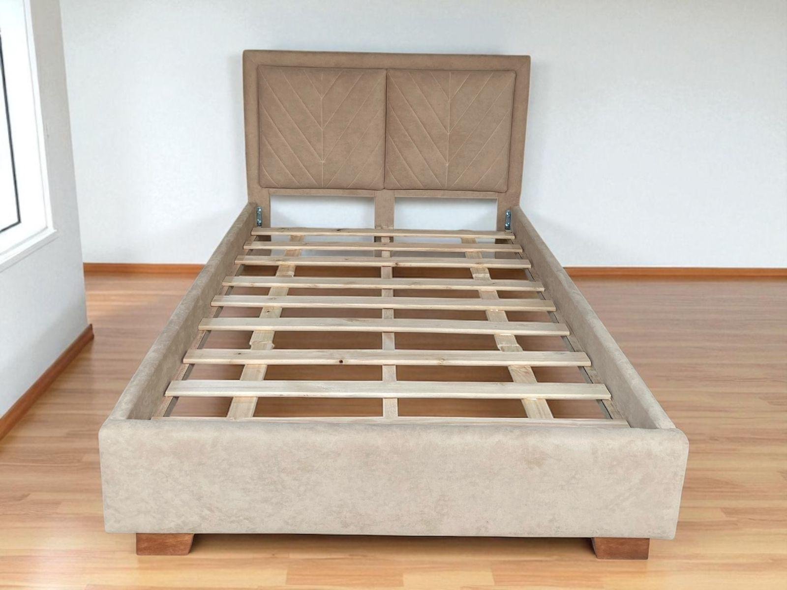 Cama Judith fabricada en madera Copal con esponja de alta densidad. Altura del espaldar: 115cm. Personalizable en color y tipo de larguero. Garantía 1 año.