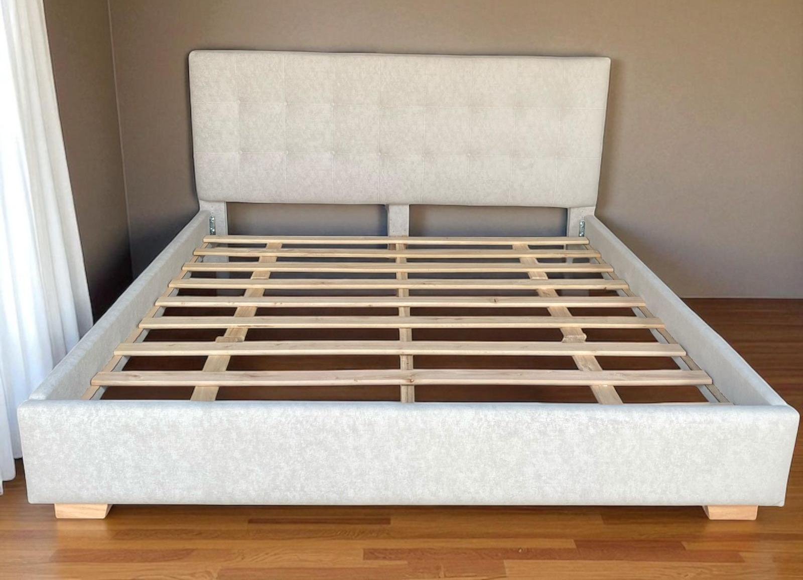 Cama Paris fabricada en madera Copal con esponja de alta densidad. Altura del espaldar: 115cm. Personalizable en color y tipo de larguero. Garantía 1 año.