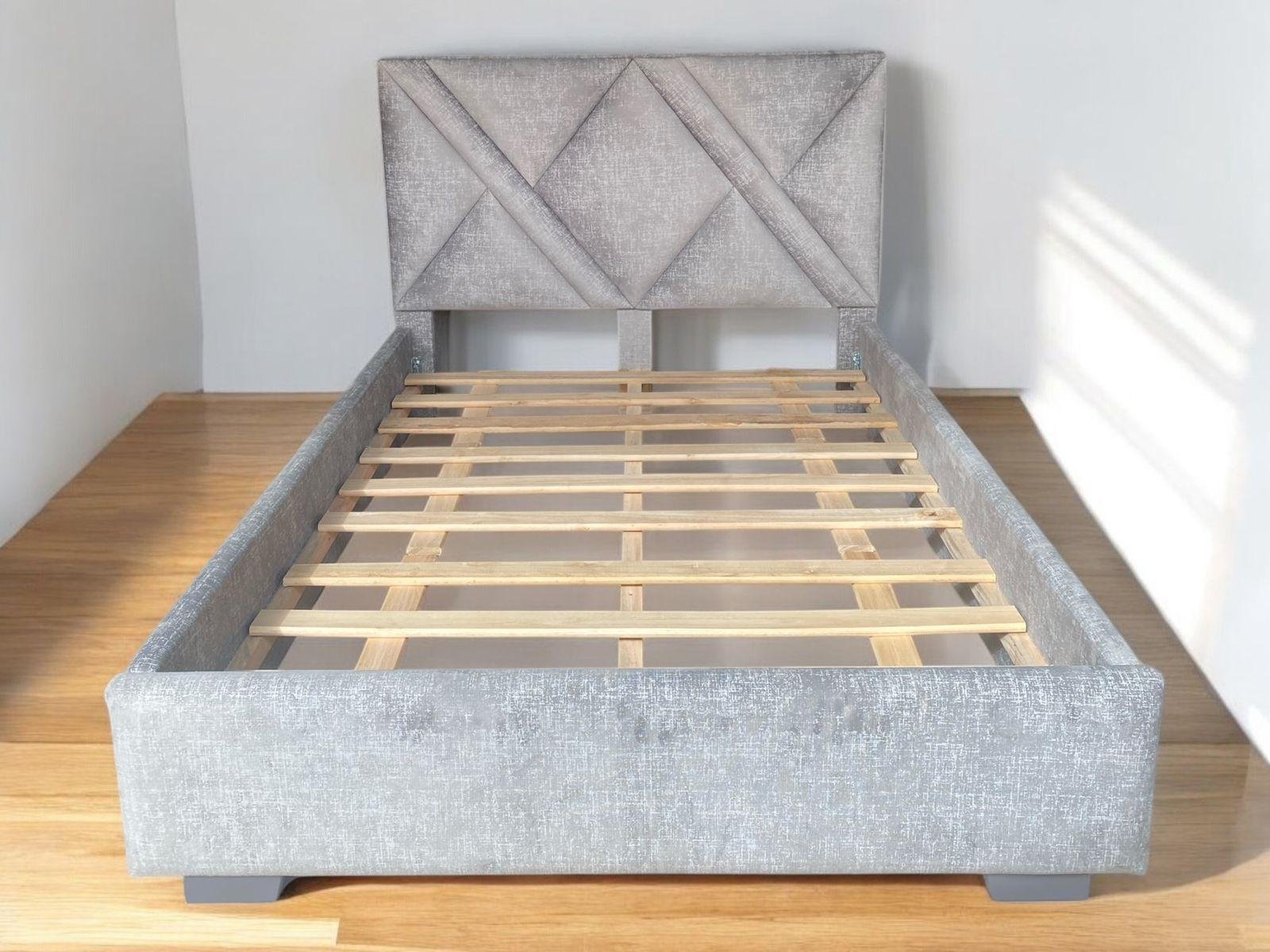 Cama Triangular fabricada en madera Copal con esponja de alta densidad. Altura del espaldar: 115cm. Personalizable en color y tipo de larguero. Garantía 1 año.