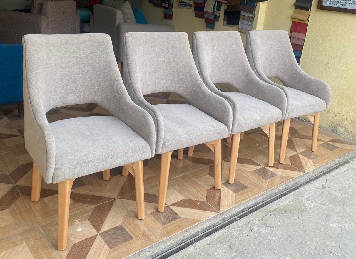 Silla acolchada y cómoda, fabricada en madera Copal. Tapiz a elección y gran variedad de diseños. Ideales para juego de comedor o como sillas auxiliares. Garantía de 1 año.